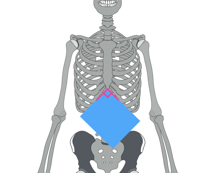 90度以上の方は肋骨が外にひらいてしまっています。外にひらいているとウエストが太くなってしまいます。ここの部分を元に戻してあげることによりウエストを細くすることができます。