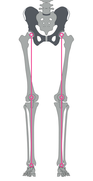 多くある歪みのパターンとしては股関節が内にねじれ膝関節が外にねじれているパターン(O脚)もしくは、膝関節だけが外にねじれているパターン(膝下O脚)のO脚があります。