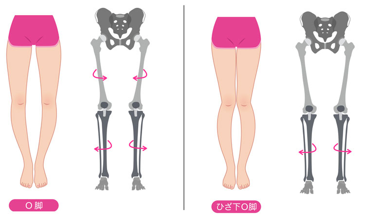 基本的にO脚というのは脚の関節の歪み、立ち方の問題により生じているケースが多いです。