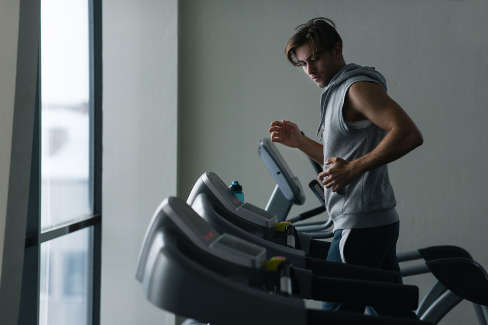 ランニングマシンという名前で親しまれているトレッドミルは、ベルトの速度や坂道の具合を調節できます。その上を歩いたり走ったりすることで幅広い強度の有酸素運動を行うことができます。