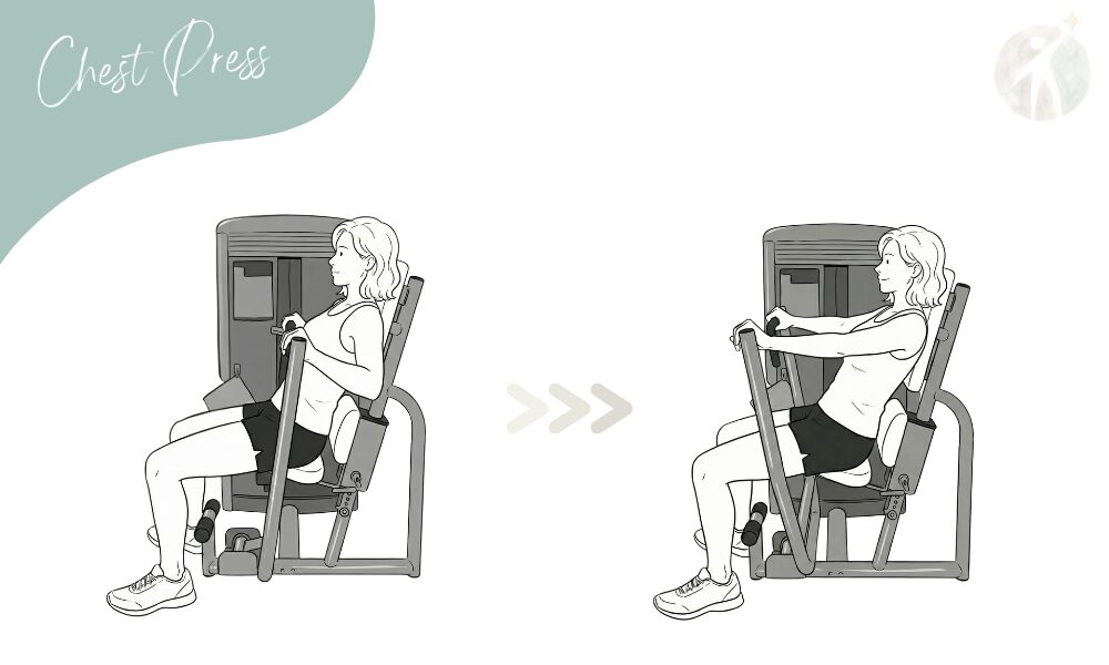 チェストプレスとは? 動画で解説 マシン外観 胸の筋肉を主に使う 胸の筋肉 チェストプレスのやり方 マシンの設定 マシンのグリップがバストトップの位置に来るようにシートの高さを調節する スタートポジション 頭 正面を向く 胸 胸をはる 腕 手幅の決め... -