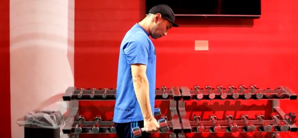 - ダンベルをまっすぐにしたまま動作します。