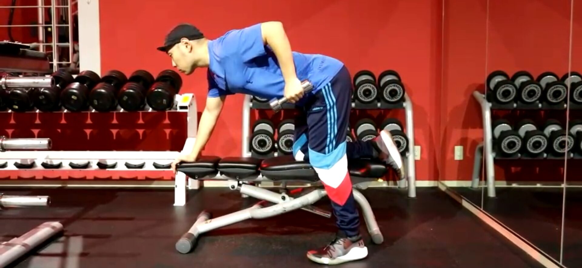 ダンベルキックバックで使う器具の解説です。