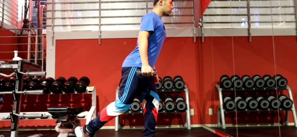 - ダンベルをもっている場合はその膝付近までダンベルをもってくる